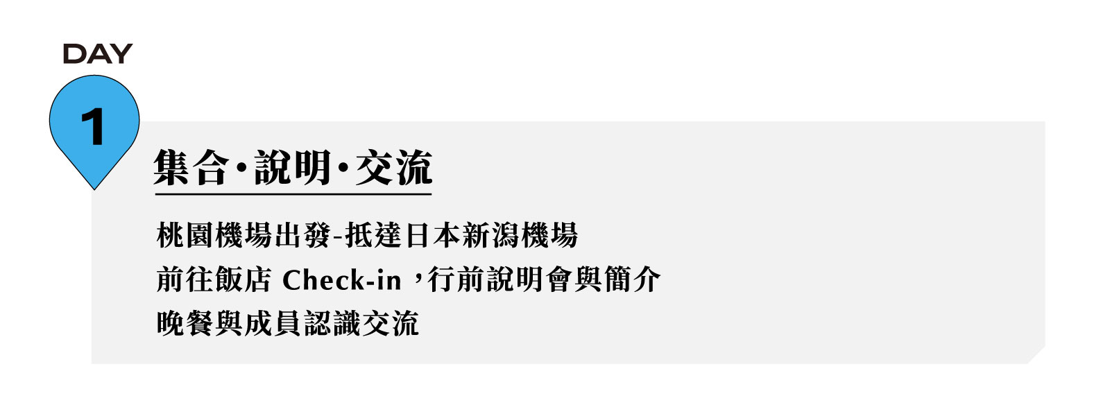 | 1 | 桃園/新潟 IT228 1345-1800 |